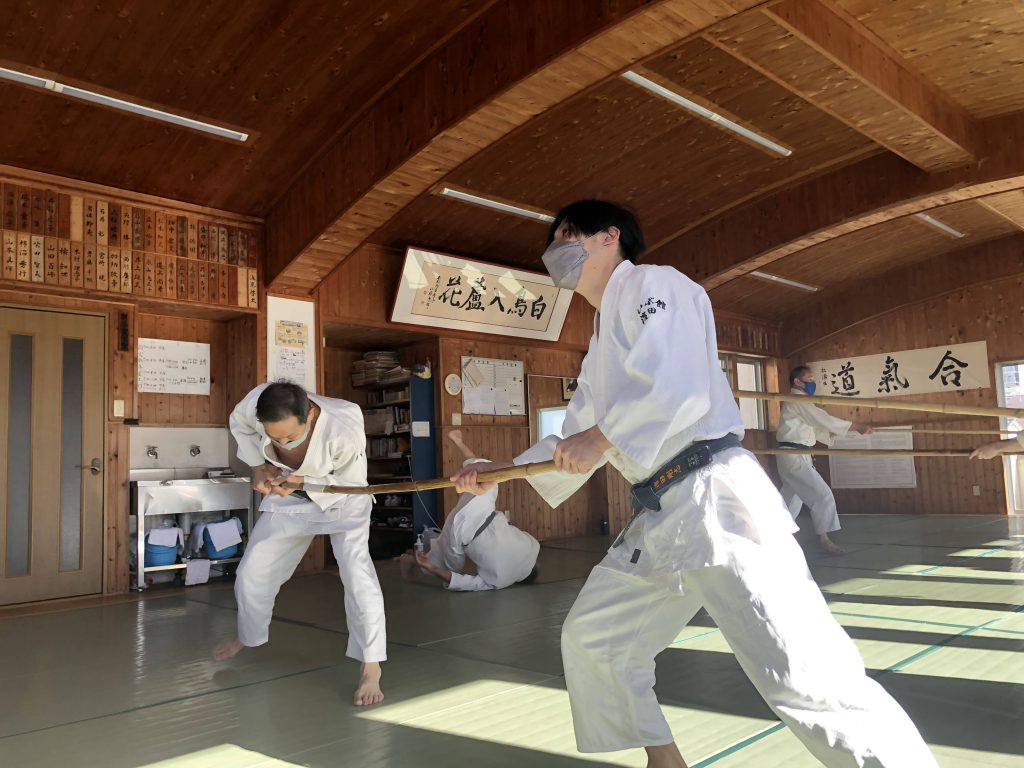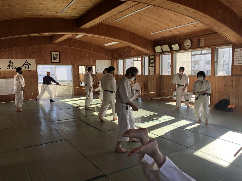 今年最後の稽古が終わりました。久々の東京からのメンバーも加わり、竹に、杖に、体術に未練を残さぬよう全力で稽古。両手取りの自由技なんて何年ぶりでしょうか。慣れてきた竹の技とは裏腹に、体術には新鮮味を感じる。着実に正常化に向かう中で来年が楽しみです!皆様良いお年をお迎えください。撮影係:林